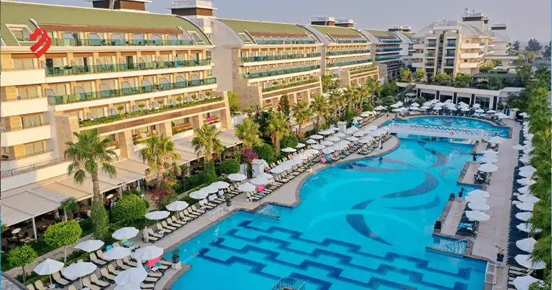 هتل کریستال واتر ورلد ریزورت، هتل ساحلی آل در منطقه بلک آنتالیا می باشد که با فاصله کمی که تا دریای مدیترانه دارد و امکانات مناسب مانند رستوران، استخر، پارک آبی و … از گزینههای عالی در رزرو هتل های آنتالیا است. با اقامت در این هتل 10 کیلومتر تا مرکز شهر فاصله خواهید داشت و فرودگاه آنتالیا در 45 کیلومتری شما خواهد بود.